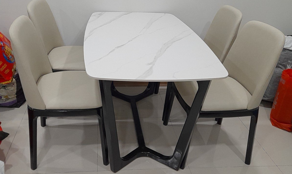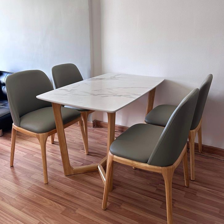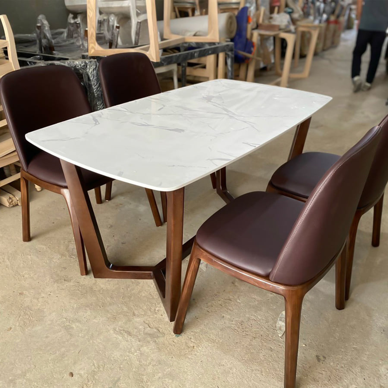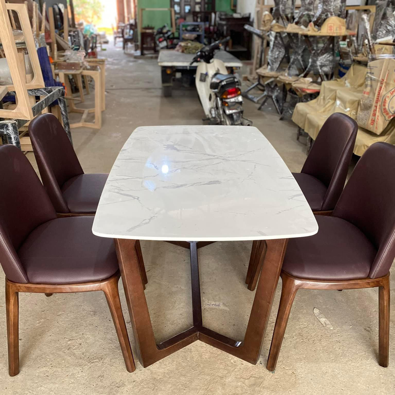 - Chất liệu: Gỗ cao su, mặt đá ceramic vân mây, nệm bọc simili (Khách vui lòng liên hệ hotline để chọn màu nệm)