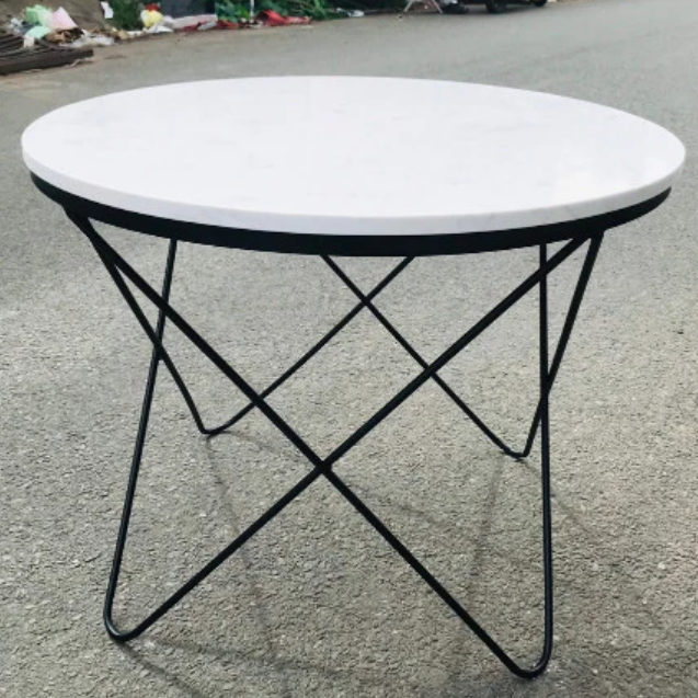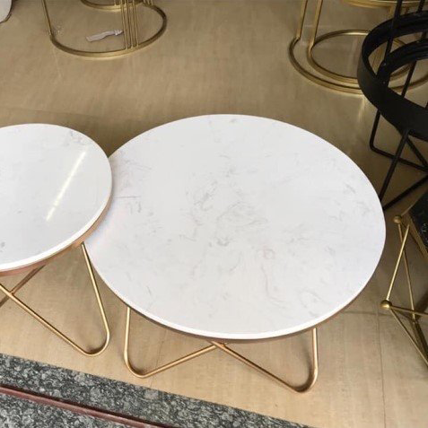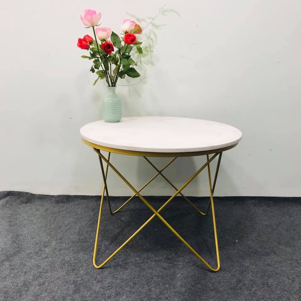 Bàn trà mặt đá hình ngôi sao được thiết kế sang trọng kết hợp với khung sắt tròn hình dáng như hình sao với viền ngoài uốn tròn sơn màu vàng đồng đẹp mắt và sang trọng, mẫu thiết kế đang được rất nhiều không gian lựa chọn phù hợp với tất cả các loại sofa có thể dùng làm bàn Cafe hoặc bàn sofa đều được.