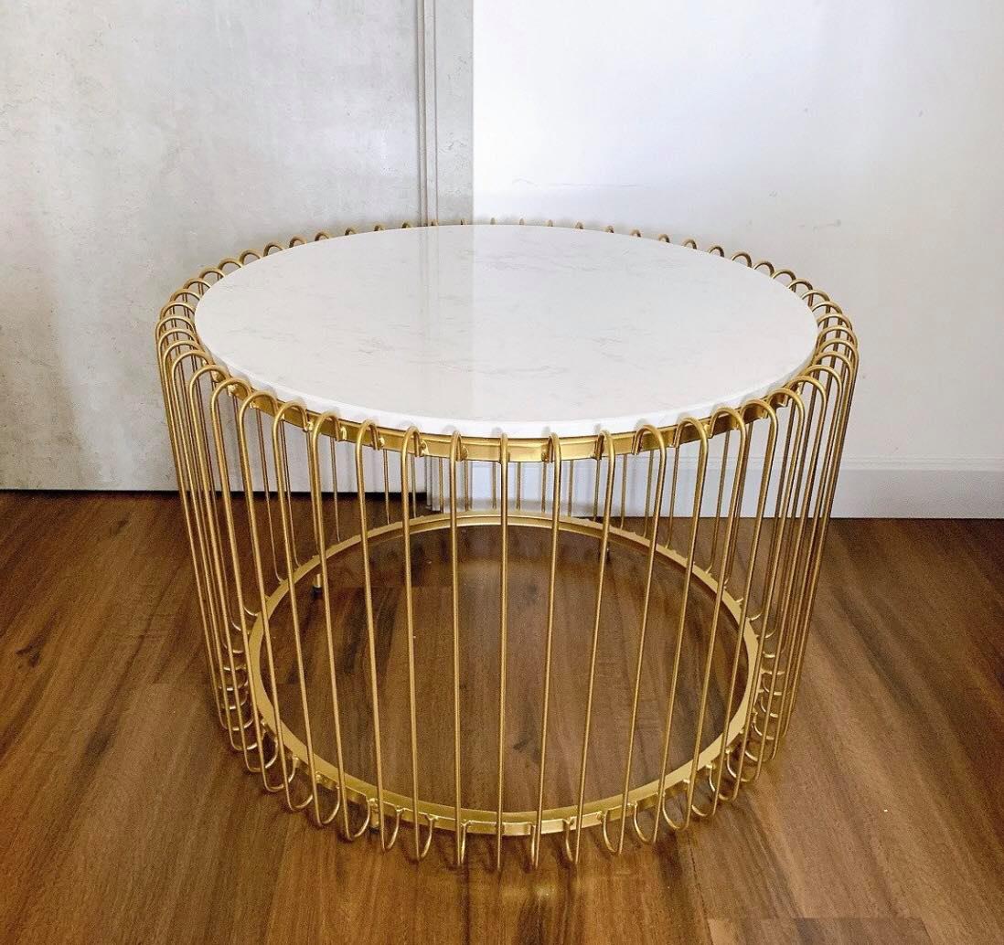 Bàn trà sofa lồng chim là mẫu bàn trà kiểu mới được ưa chuộng nhất hiện nay. Với chân bàn thiết kế vô cùng hiện đại, tinh tế, mang đến cho không gian sự hiện đại, trẻ trung, năng động. Được sử dụng khung sắt sơn màu đen hoặc mạ vàng được gia công tỷ mỷ kiểu dáng lồng chim đẹp mắt kết hợp với mặt đá trắng mang sự sang trọng và mới lạ cho không gian phòng khách, kết hợp với Sofa và thảm phòng khách lại càng rất đẹp, bên cạnh đó còn có thể dùng làm bàn cafe hay nhiều công năng khác nhau.