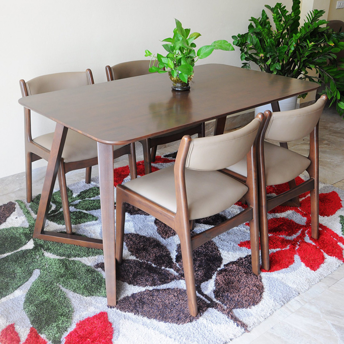 I. Bộ bàn ăn chân chữ V 1m2 + 4 ghế Bella