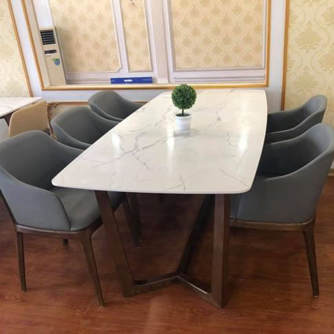 I. Bộ bàn ăn Concorde mặt đá và 6 ghế Grace có tay