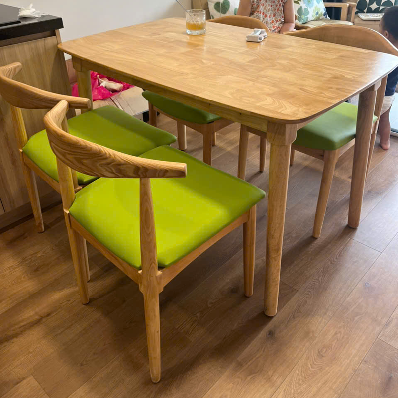Bàn ăn là nơi trò chuyện, kết nối các thành viên trong gia đình, không gian nơi bố trí chiếc bàn ăn cũng cần được cân nhắc tỉ mỉ khi thiết kế phòng bếp để tạo nên không gian ấm áp. Bộ bàn ghế Bull được làm từ gỗ tự nhiên mang lại cảm giác gần gũi và ấm cúng. Vân gỗ đẹp mắt được phủ lớp sơn bóng mịn với 2 màu chủ đạo màu tự nhiên và óc chó sang trọng.