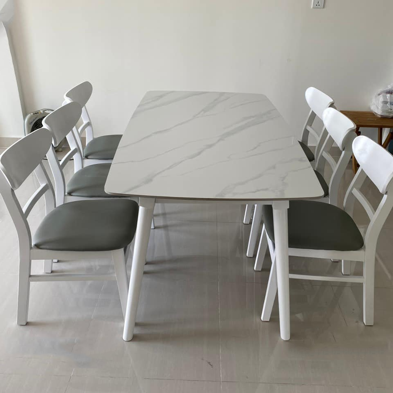 I. Bộ bàn ăn mặt đá và 6 ghế Mango