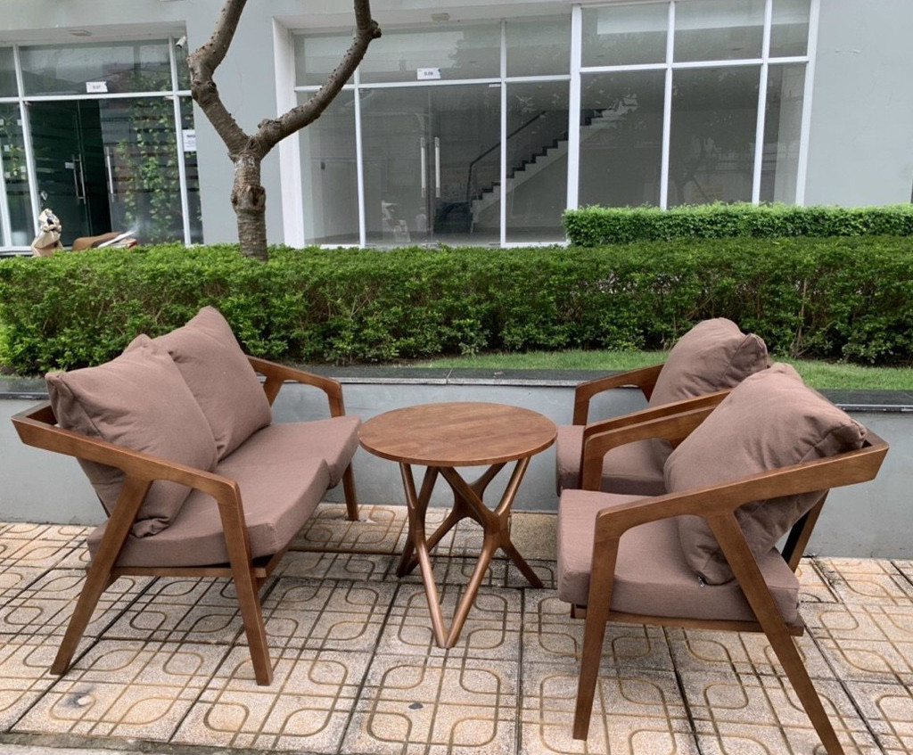 Bộ sofa cafe gồm 1 bàn trà, 1 ghế đôi và 2 ghế đơn.