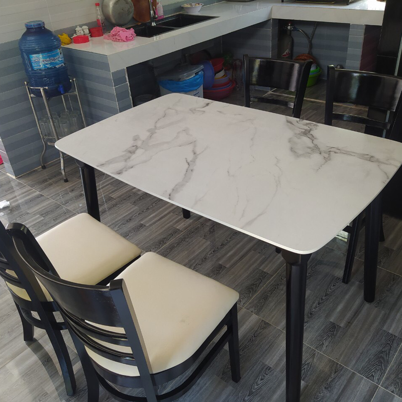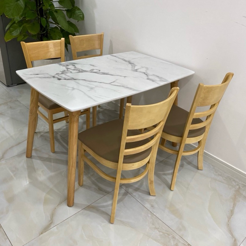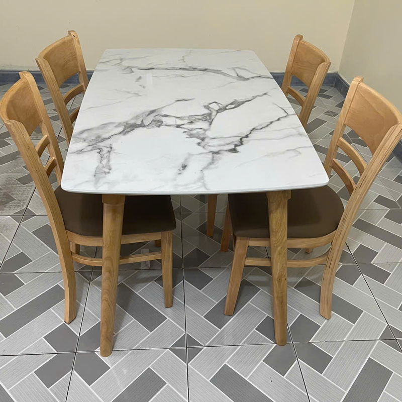+ Bàn: Khung chân gỗ cao su; mặt bàn mdf phủ melamine giả vân đá