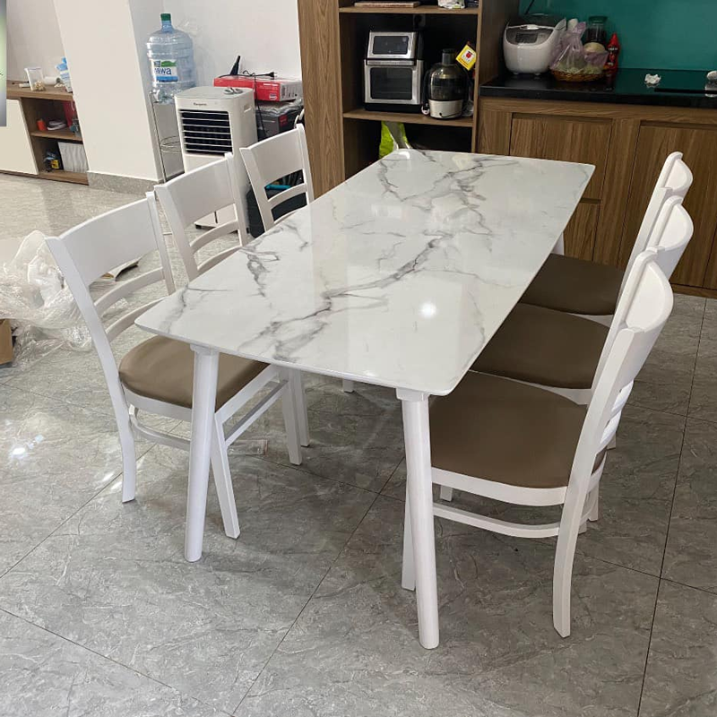 + Bàn: Khung chân gỗ cao su; mặt bàn mdf phủ melamine giả vân đá