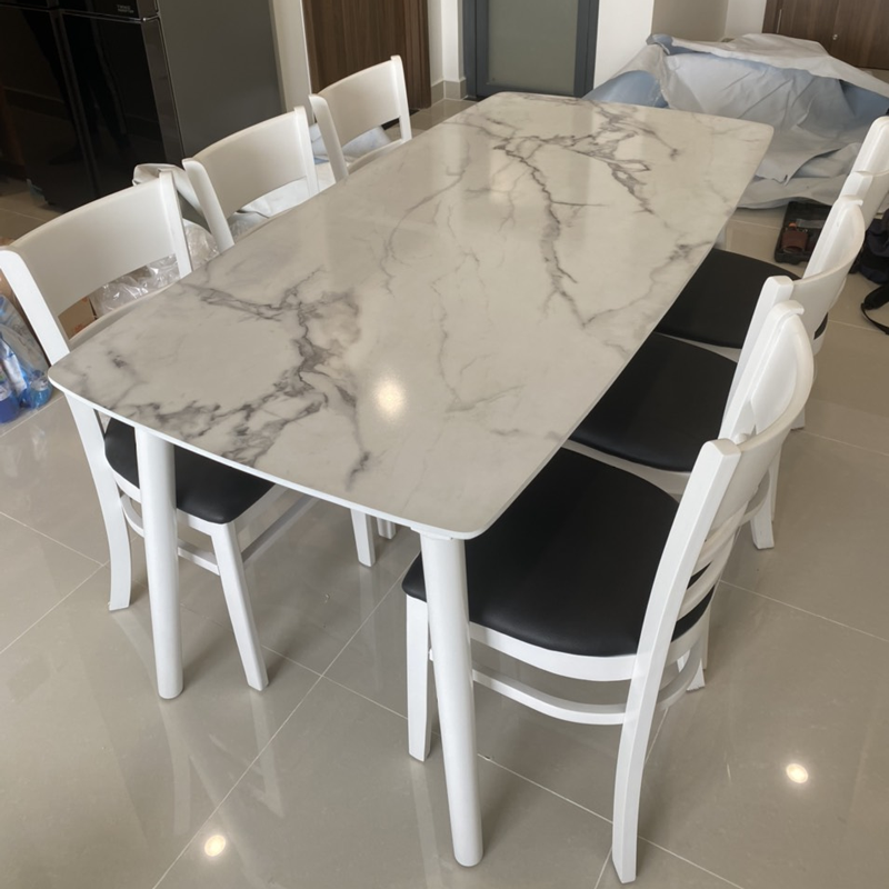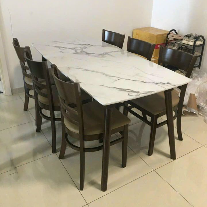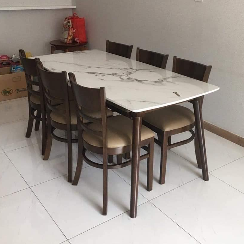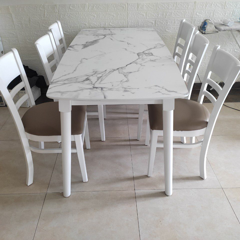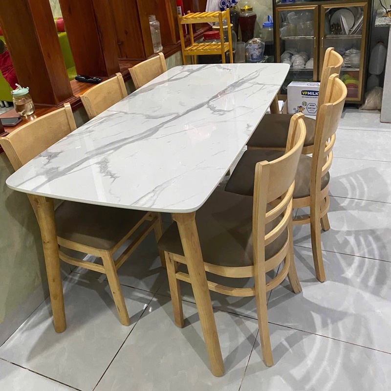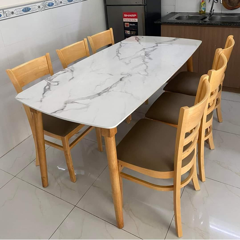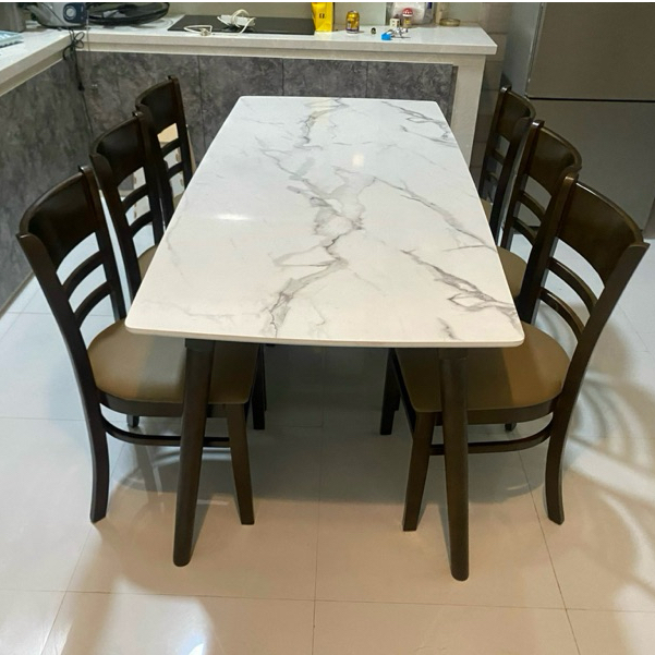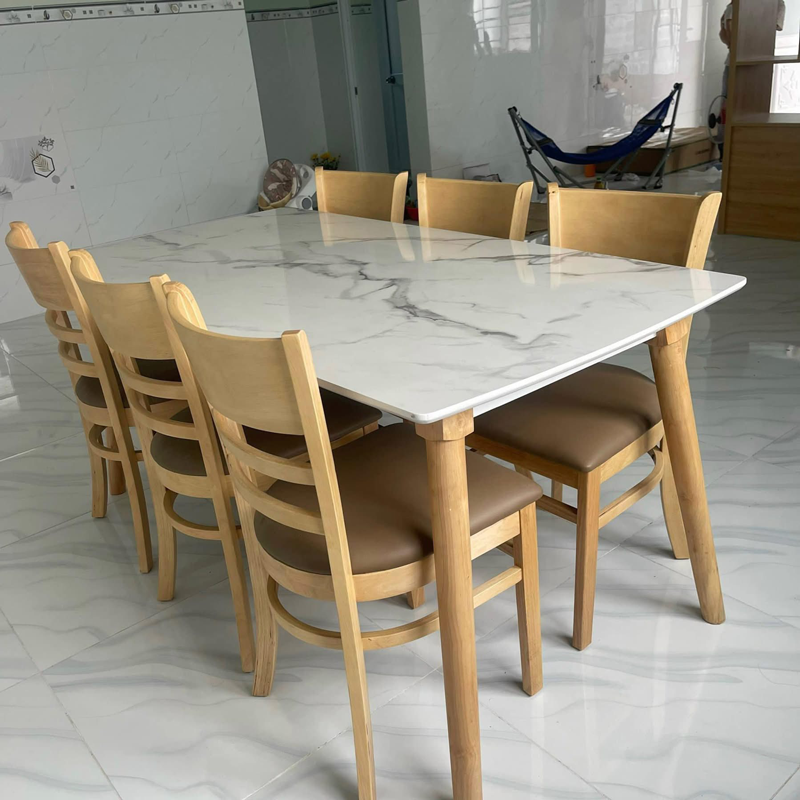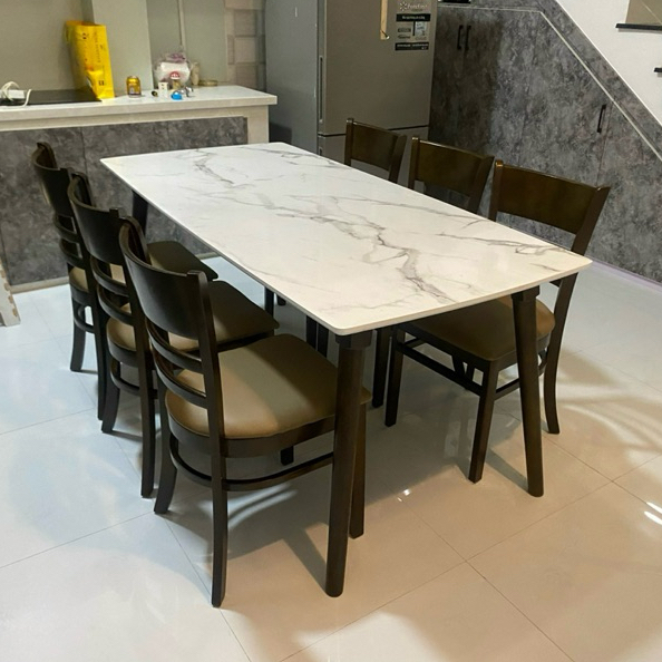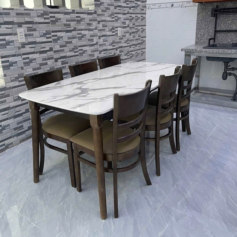 I. Bộ bàn ăn mặt giả vân đá 1m6 và 6 ghế Cabin