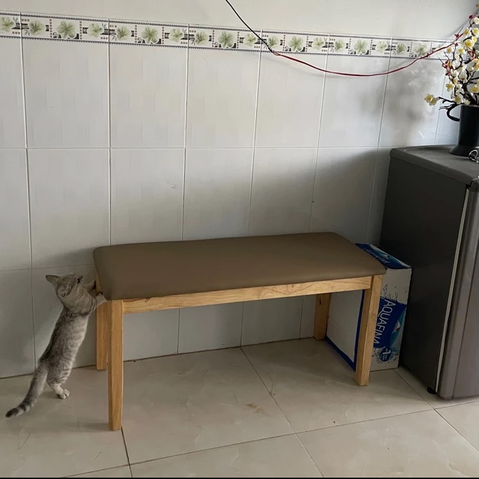 Ghế Băng Cabin dài bọc nệm simili bọc nệm được làm từ gỗ cao su tự nhiên bền đẹp thân thiện với môi trường, các góc cạnh được gia công kỹ lưỡng, bề mặt nhẵn bóng tạo tính thẩm mỹ cao, thiết kế chắc chắn, tiện dụng, mặt ghế được bọc nệm với lớp simili bền, êm ái thường dùng vào những việc như: ngồi ở phòng chờ nhà ga, phòng khám, phòng tập gym, để ngoài ban công, vường hoa, trang trí quán café, nhà hàng…