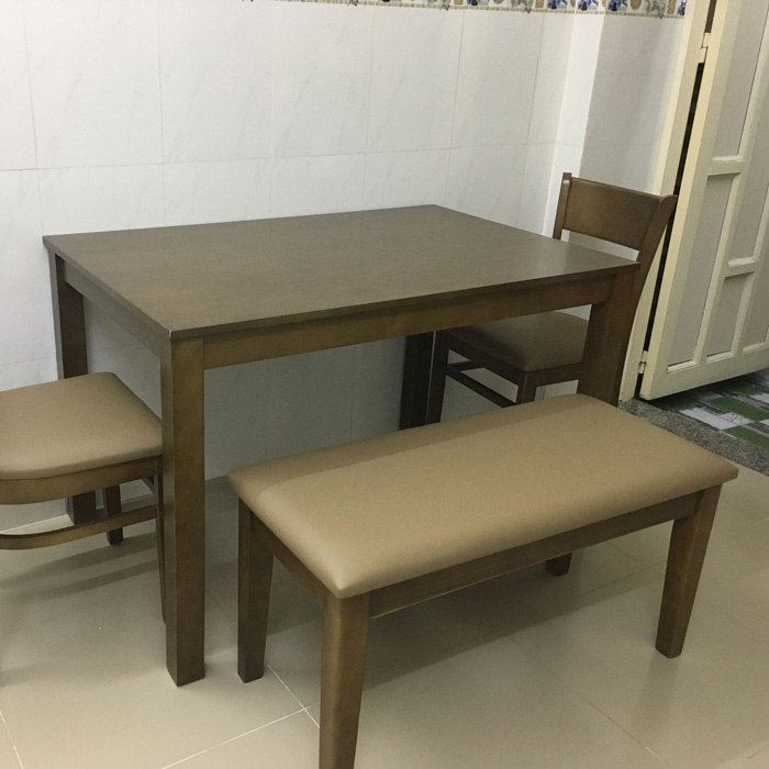 - Chất liệu: Gỗ cao su, nệm simili/vải (Khách vui lòng ib hotline để chọn màu nệm)