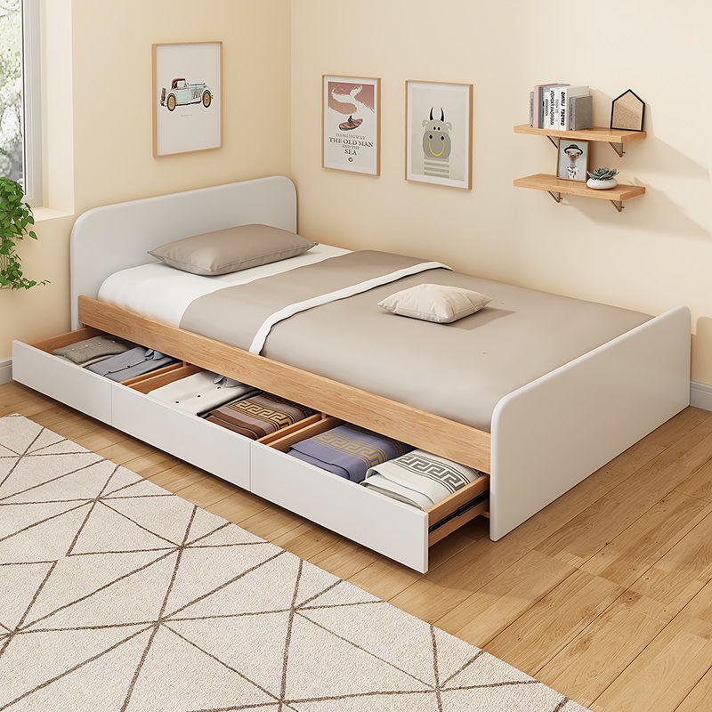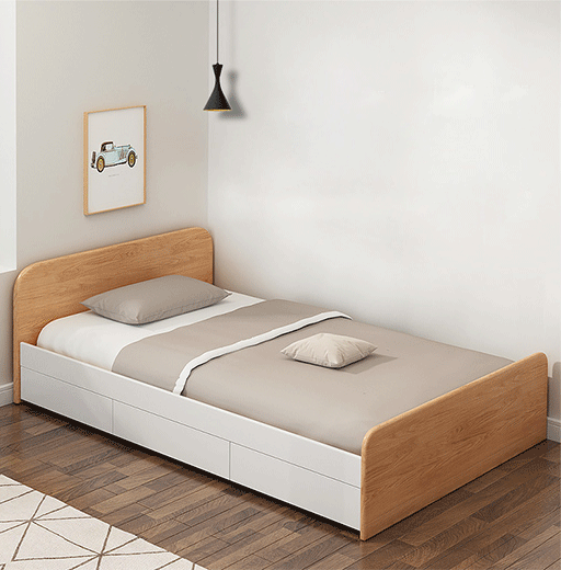 Sản phẩm giường đơn phong cách hiện đại giúp bạn tiết kiệm diện tích phòng ngủ khi được cấu tạo thêm công năng tủ đựng đồ tiện lợi ngay phía dưới không gian trống của giường. Chất lượng giường ngủ tốt và êm ái, kết hợp với tủ đựng đồ có ngăn kéo dễ dùng và thuận tiện sẽ mang đến cho bạn sự thoải mái và thư giãn khi sử dụng, đồng thời cũng giúp bạn cất giữ độc dùng gọn gàng và sạch sẽ. Một không gian sống ngăn nắp sẽ tạo nên vẻ đẹp tự nhiên, dễ chịu.