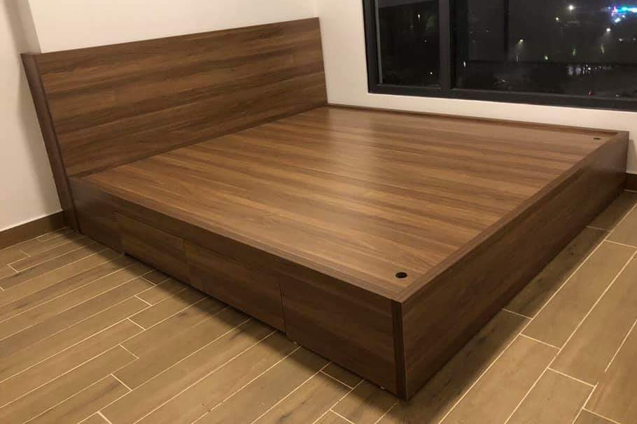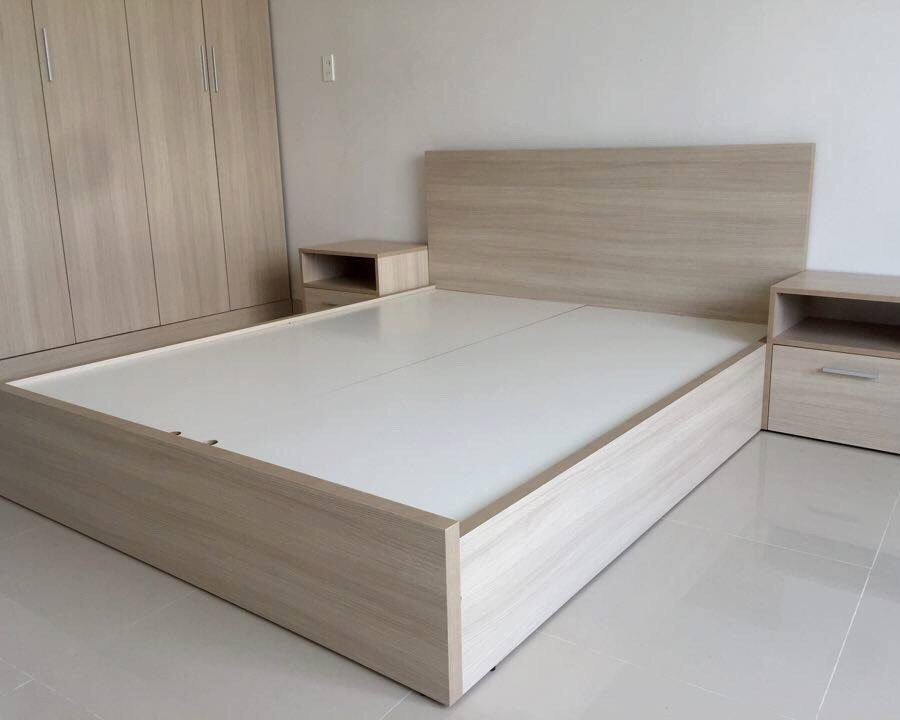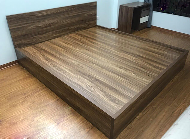 Giường được làm từ gỗ công nghiệp MDF được xử lý với công nghệ hiện đại nên vô cùng bền chắc. Hơn nữa với lớp phủ Melamine màu gỗ bên ngoài sẽ khiến nó trở nên sang trọng lại khó bị trầy xước trong quá trình sử dụng.
