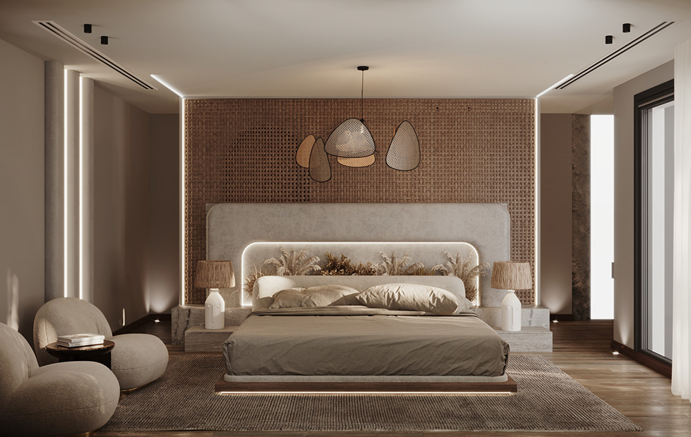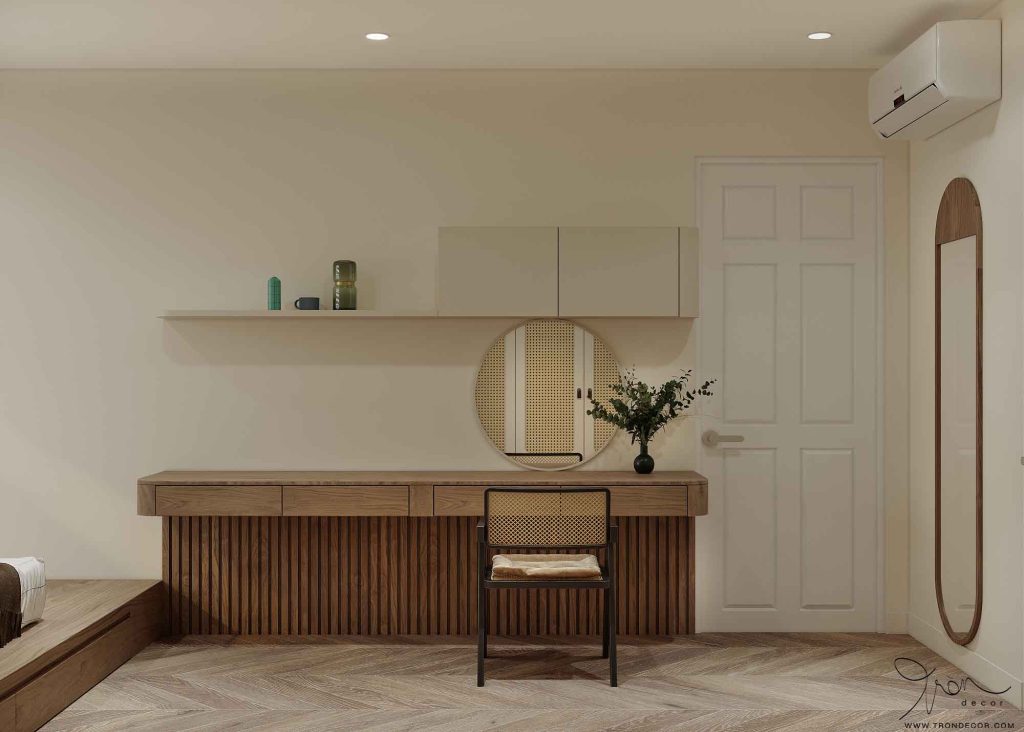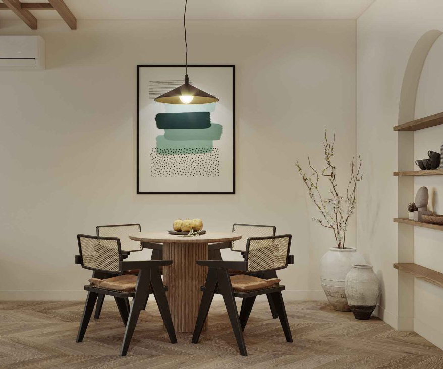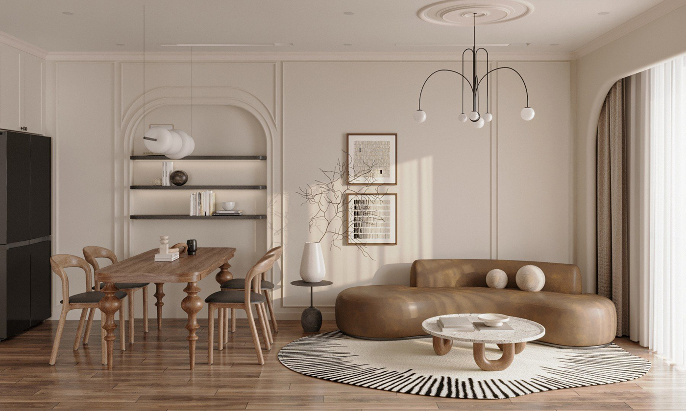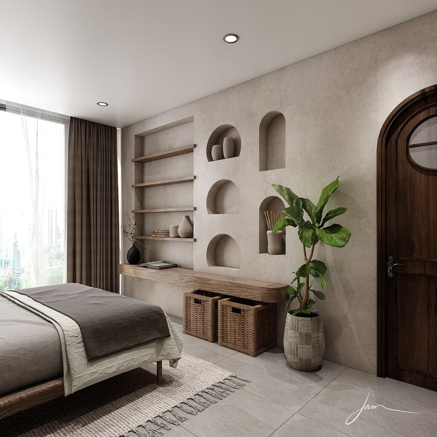 Khi bạn đã định hình được những loại vật liệu, màu sắc và kiểu dáng mình thích, điều quan trọng là nghĩ cách kết hợp chúng với nhau sao cho hài hòa. Với wabi-sabi, sự đơn giản là chìa khóa. Nội thất Wabi-sabi thiên về bố cục ghép nối, nơi chức năng là tâm điểm.Bạn có thể thiết kế các tủ âm tường, lựa chọn đồ decor như bát đĩa, hay một số loại cây trồng trong nhà để mang thêm chút tươi mới cho không gian.