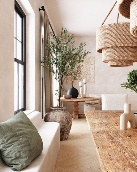 Vì một trong những đặc trưng của wabi-sabi là kết nối với trái đất, không có gì ngạc nhiên khi xu hướng thiết kế nội thất này dựa vào việc sử dụng các vật liệu tự nhiên . Khi lựa chọn đồ, hãy chú ý đến vật liệu và ưu tiên các lựa chọn tự nhiên như gỗ và đá.