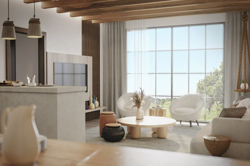 Những vật liệu và màu sắc từ tự nhiên có thể dễ dàng kêt hợp với nhau và làm hài lòng mọi thị hiếu thẩm mỹ ở các tầng lớp khác nhau. Ví dụ: Nếu bạn thích nhà kiểu Bắc Âu có thể lựa chọn gỗ sáng màu, nếu thích kiểu nhà Địa Trung Hải có thể chọn màu đất nung.