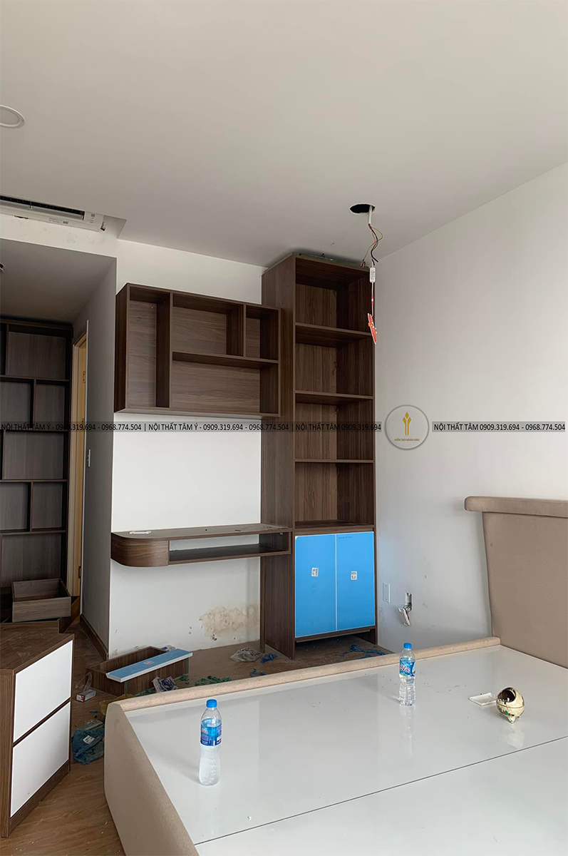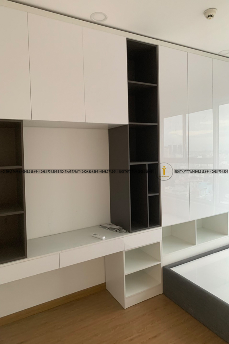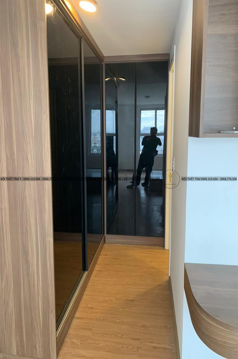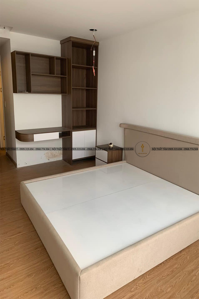 Căn hộ được Nội Thất Tâm Ý thiết kế thi công xây dựng gồm 3 phòng ngủ, thiết kế theo phong cách hiện đại dễ dàng gây ấn tượng. Đặc biệt, nội thất phòng ngủ được chú trọng nhằm mang đến cảm giác yên bình, và tạo cho gia chủ một giấc ngủ ngon mỗi đêm.